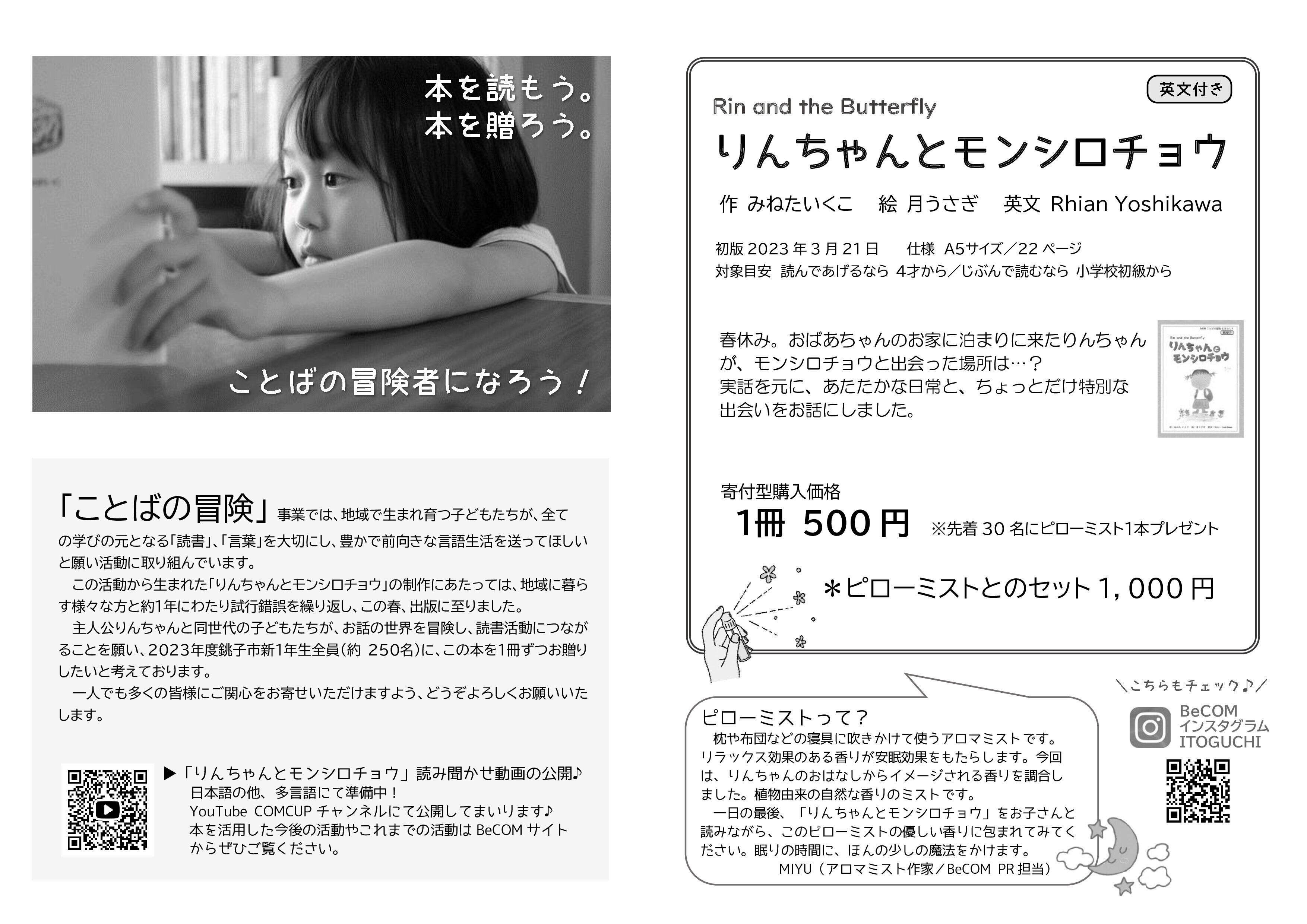 主人公りんちゃんと同世代の子どもたちが、お話の世界を冒険し、読書活動につながることを願い、2023年度銚子市新1年生全員(約250名)にこの本を1冊ずつお贈りしています。